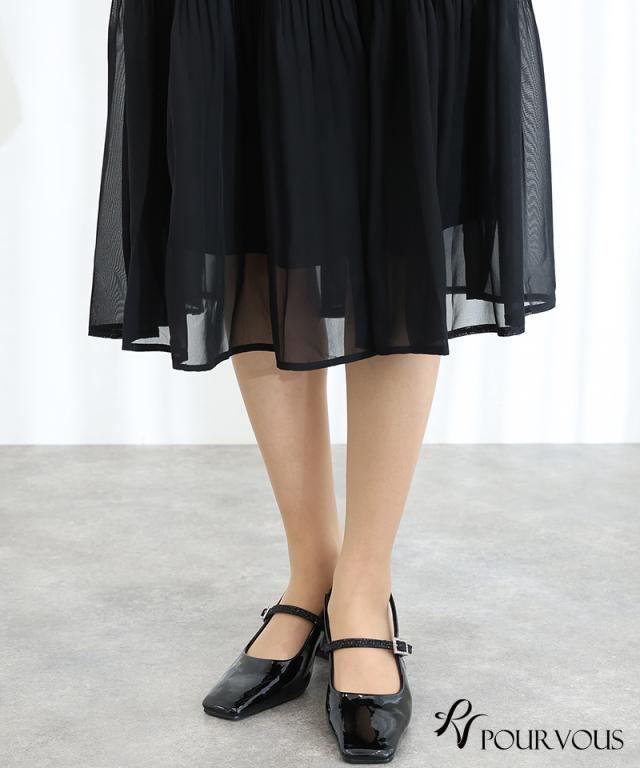 ひらりと揺らめくスカートは膝下丈なので足回りも綺麗に見せてくれます。