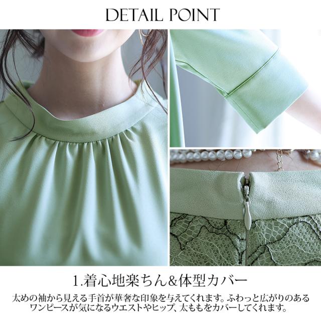 後ろレースAラインワンピース【837212016】 20代・30代・40代・54代長袖・膝丈・セットアップ・スカート・体型カバー・ジャケット・テーラード・スーツ・大きいサイズなど・即日発送・送料無料結婚式・婚活・披露宴・顔合わせ・二次会・同窓会・お呼ばれ・食事会・謝恩会・親族・七五三・お宮参り・冠婚葬祭・弔事・女子会・デート・入学式・卒業式・入園式・卒園式・ママ・マタニティー・セレモニー・セレブ・パーティー