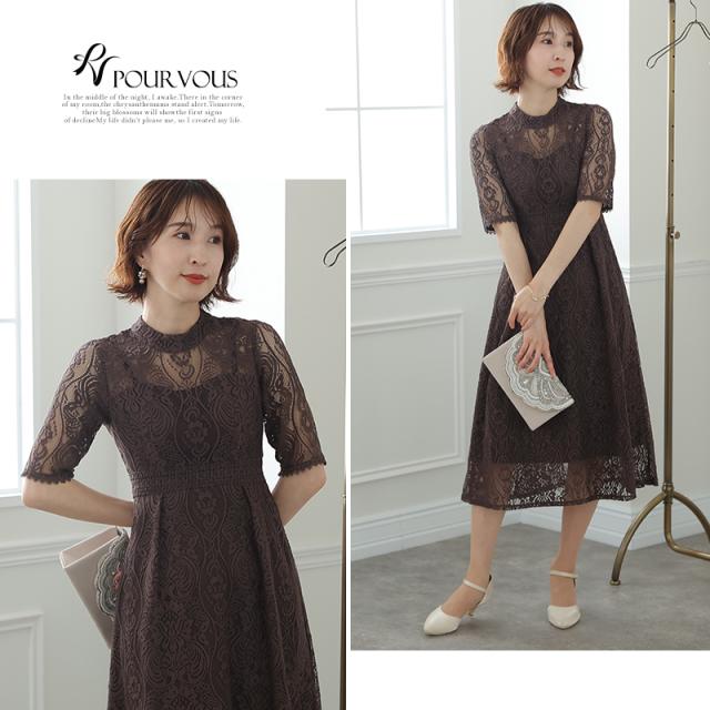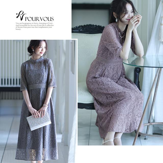 刺繍レースワンピース【840212020】 20代・30代・40代・54代長袖・膝丈・セットアップ・スカート・体型カバー・ジャケット・テーラード・スーツ・大きいサイズなど・即日発送・送料無料結婚式・婚活・披露宴・顔合わせ・二次会・同窓会・お呼ばれ・食事会・謝恩会・親族・七五三・お宮参り・冠婚葬祭・弔事・女子会・デート・入学式・卒業式・入園式・卒園式・ママ・マタニティー・セレモニー・セレブ・パーティー