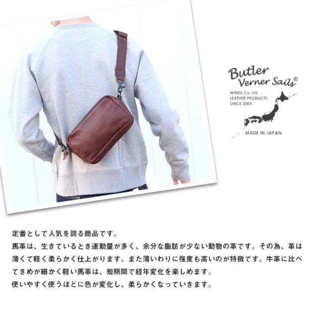 ショルダーバッグ 馬革 スクエア メンズ 本革 バトラーバーナーセイルズ 日本製 JA-2427 コンパクト レザー 黒 ブラウン キャメル ボディバッグ 鞄 かばん バッグ 斜め掛け ショルダー プレゼント ギフト 贈り物 Butler Verner Sails