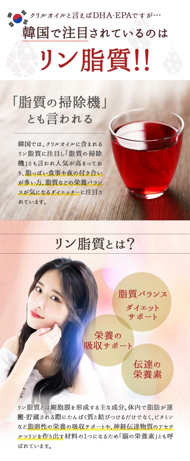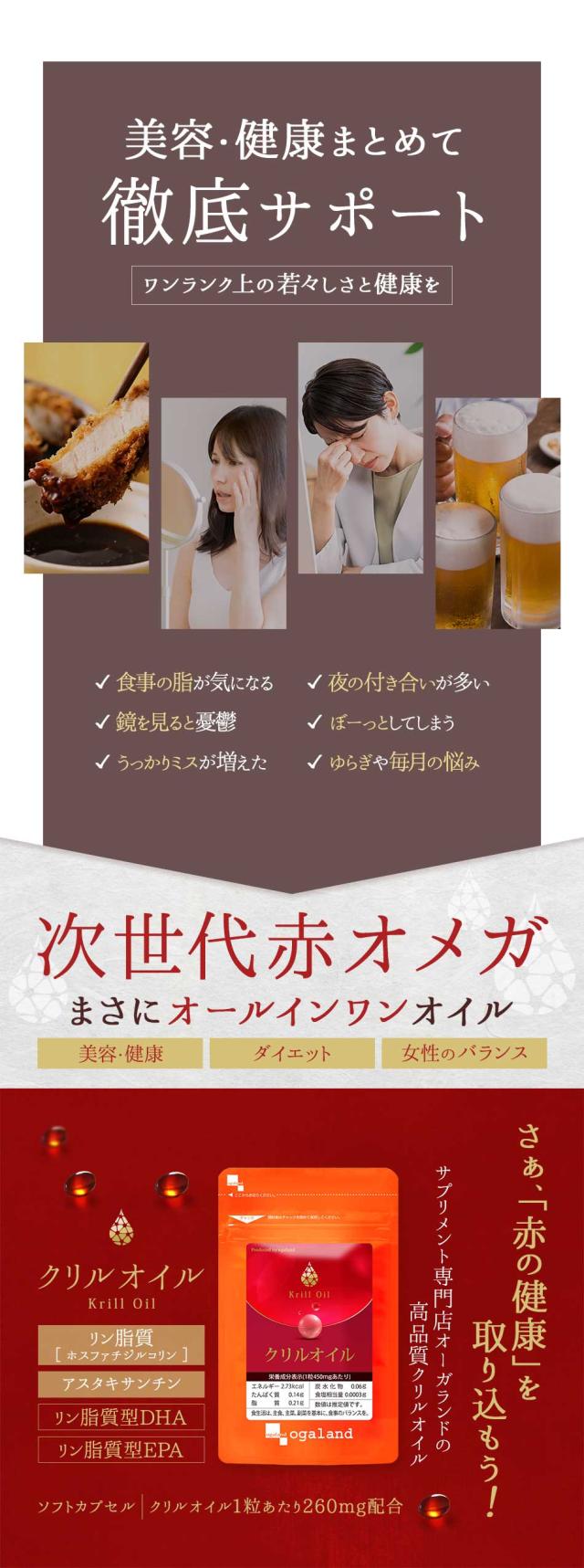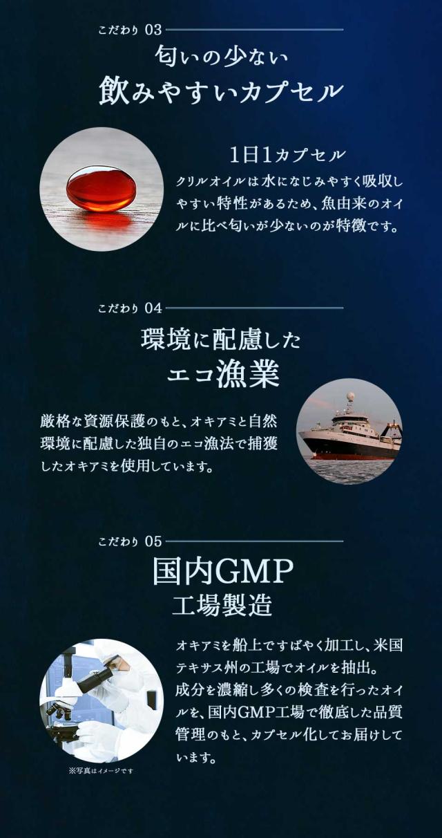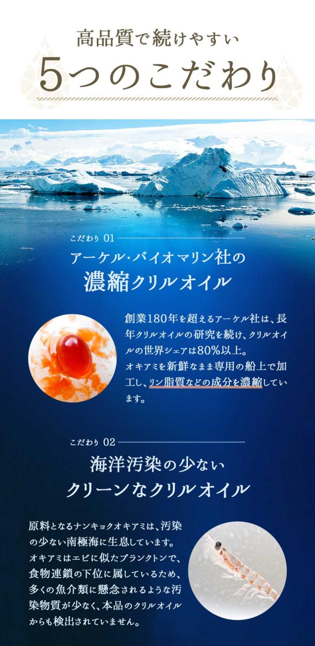 主要原料(1カプセルあたり): クリルオイル(オキアミ抽出物) 260mg /