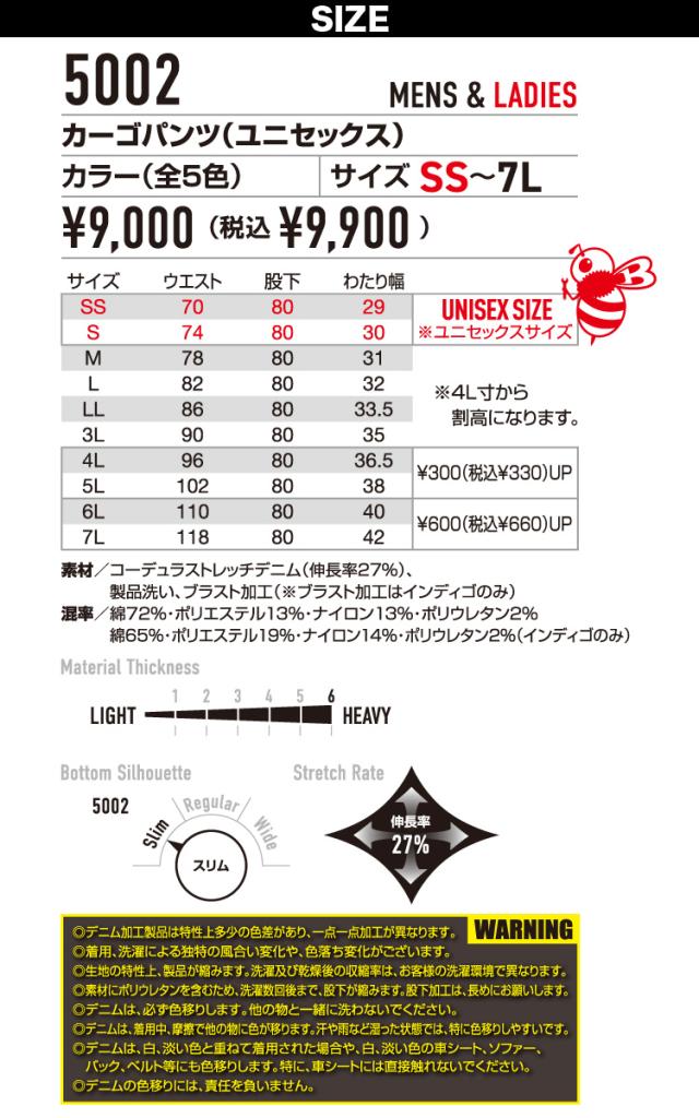 バートル 5001/5002 ストレッチデニム上下セット コーデュラ ジーンズ 作業服 作業着 クレイジーストレッチ 生地厚め