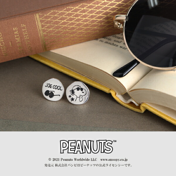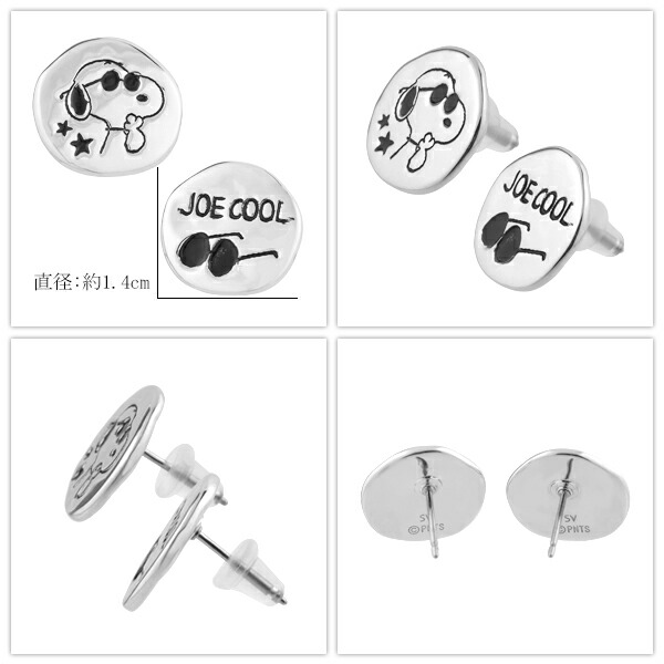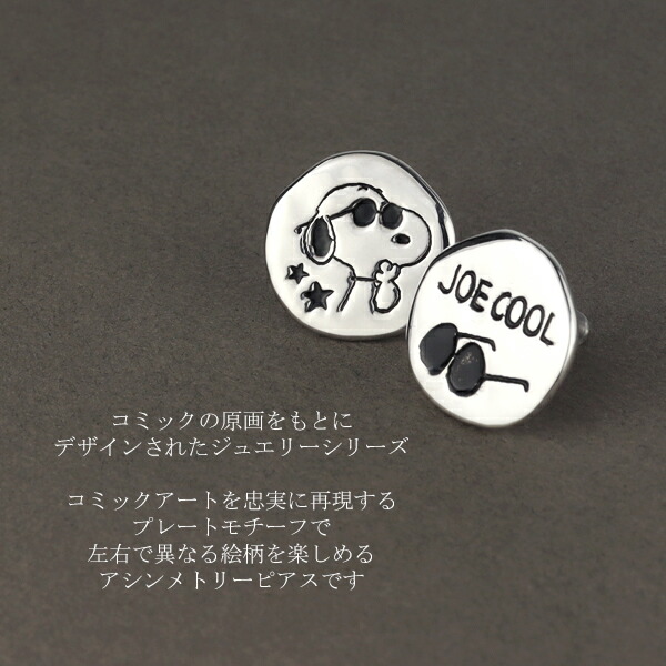 スヌーピー ジョー・クール ラウンド プレート アシンメトリー ピアス 2P 両耳用 シルバー925 チタンポスト サングラス 公式 PEANUTS SNOOPY グッズ