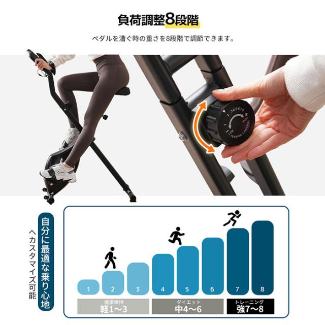 「クーポン配布中」フィットネスバイク 静音 バイク スピンバイク 折りたたみ収納 負荷8段階調整 座高調節5段階 背もたれ 連続使用 ダイエット器具 室内運動 家庭用 健康器具 1年安心保証