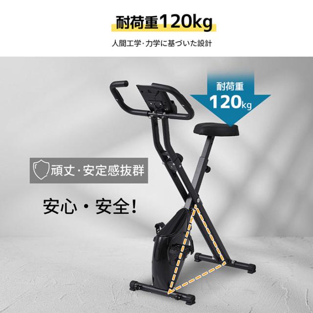【省スペースで収納可能】使わない時はピンを抜き差しするだけで、折りたためて収納する事ができますよ。省スペースで収納可能なX型フィットネスバイク!女性やご高齢の方でもラクラク持ち運びが可能!