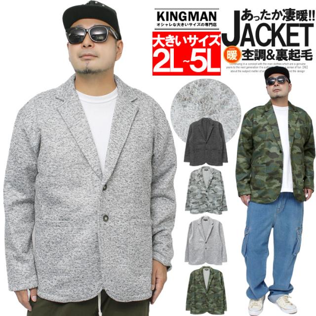 【送料無料】 テーラードジャケット メンズ 大きいサイズ ニットフリース 裏起毛 スウェット ストレッチ 2B ジャケット カモフラ 迷彩 防寒 暖かい スエット ブレザー ビジネス アウター ブルゾン キレイめ ストリート系