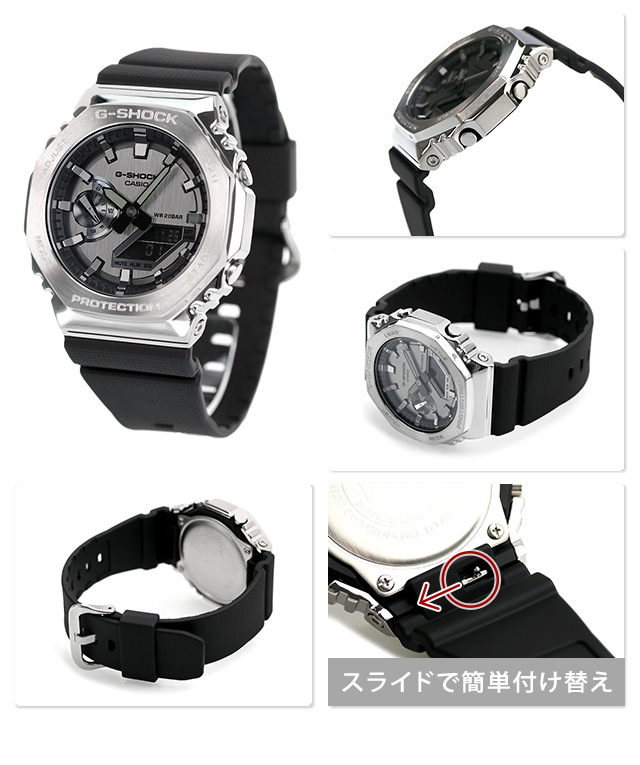 7年保証キャンペーン カシオ Gショック アナログデジタル 2100シリーズ ワールドタイム クオーツ メンズ 腕時計 GM-2100-1ADR CASIO G-SHOCK ANALOG-DIGITAL 2100 SERIES アナデジ ブラック ◆G-SHOCKの初代モデルDW-5000Cにも採用された、八角形フォルムを継承するGA-2100シリーズから、メタル素材を採用したモデルが登場。ベゼルカバー部分に硬質なステンレス素材を採用。ステンレスのベゼルに、円周状のヘアライン仕上げを施し、シックなデザインとなっています。また、文字盤に蒸着処理を施し、GA-2100らしいシンプルデザインをシャープかつスタイリッシュに引き上げました。バンドには徐々に変化するチェッカーパターンのテクスチャをさりげなく入れ、カジュアルな印象の樹脂バンドに上質感をプラスしています。初代から受け継がれるコンセプトはそのままに、時計としてのクオリティを追求し外装や装着性の進化に磨きをかけたモデルです。 国内モデル品番:GM-2100-1AJF