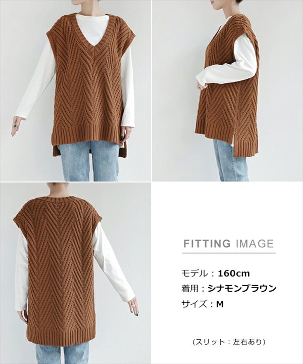 ニットベスト レディース ロング ヘリンボーン柄 深Vネック ヘリンボーン ニット ざっくりニット ざっくり ウールライク 凹凸感 体型カバー 軽やか質感 カジュアル おしゃれ おすすめ かわいい 可愛い オフィスカジュアル 楽ちん ゆったり tops knit ブラック 黒 ホワイト 白 ブラウン グレー ブラウン 20代 30代 40代 大人 コーデ