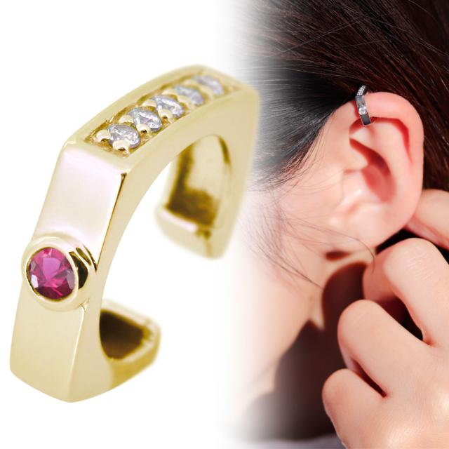 イヤーカフ レディース 18金 18k 片耳用 イヤカフ 7月誕生石 ルビー ノンホールピアス 2way