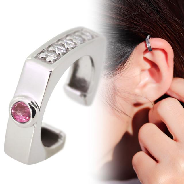 イヤーカフ レディース イヤカフ ダイヤモンド シルバー イヤリング 片耳用 ピンクトルマリン SV925 リバーシブル