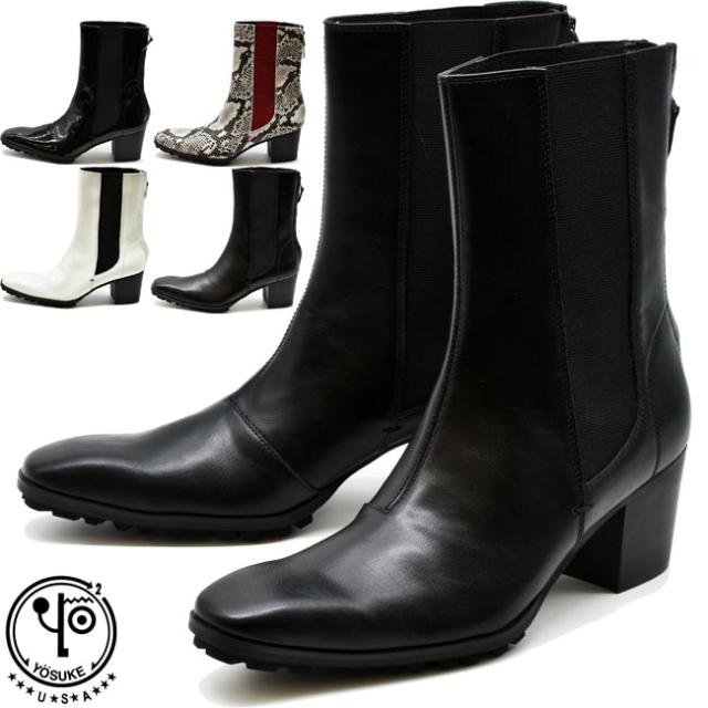 YOSUKE U.S.A ヨースケヒールブーツ ロングノーズ チゼルトゥ サイドゴアブーツ 厚底ブーツ メンズ