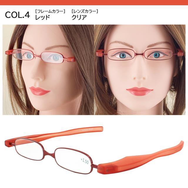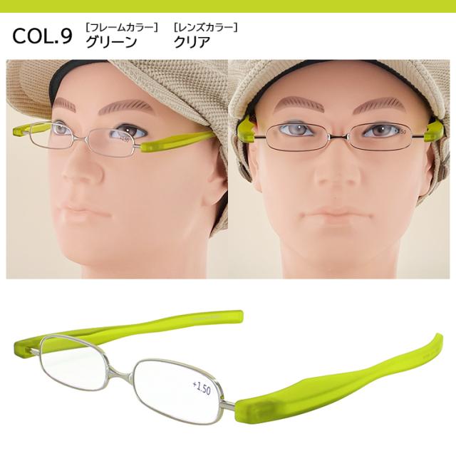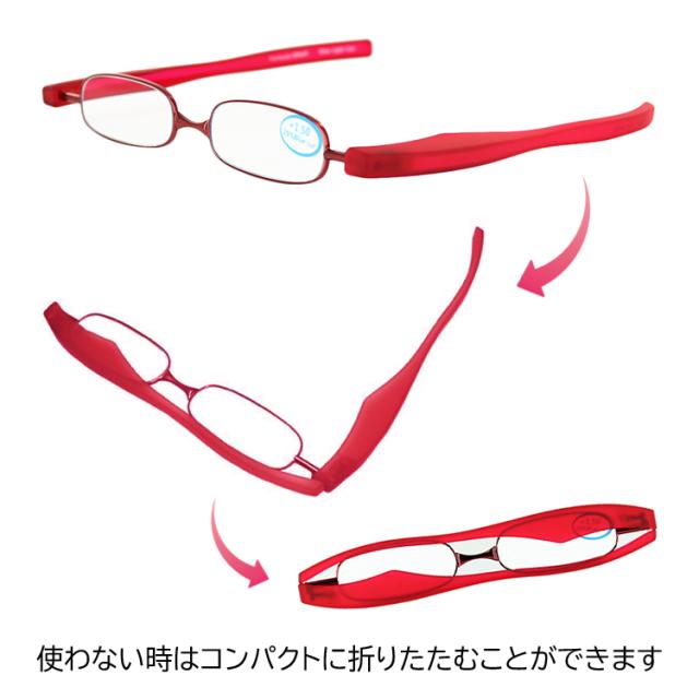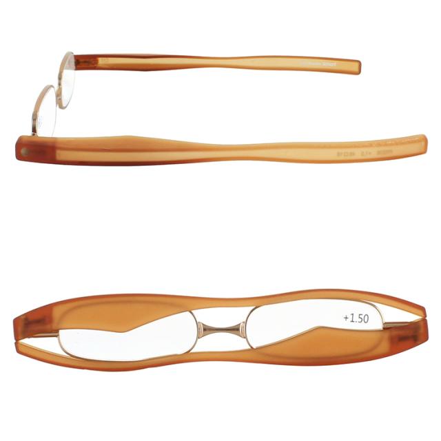 使用しない時はコンパクトに折りたためる回転式テンプルの老眼鏡 リーディンググラス。