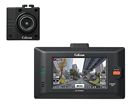 セルスター(CELLSTAR) 2カメラドライブレコーダー CS-92WQH 日本製 3年保証 前後370万画素 録画 STARVIS IMX335搭載 GPSお知らせ機能 GPS 2.45インチタッチパネル 64GBmicroSD付属
