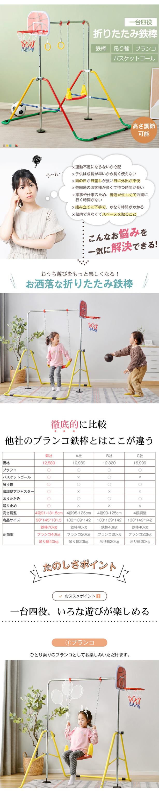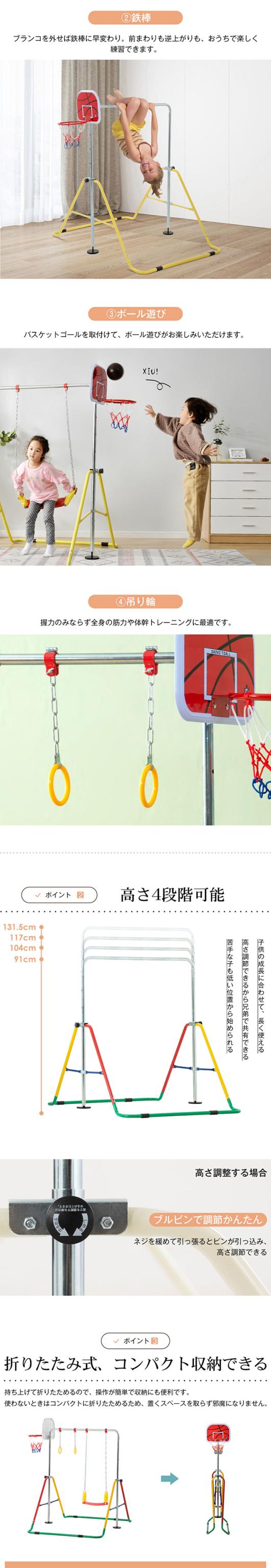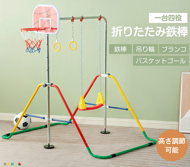鉄棒 室内 屋外 折りたたみ 5段階高さ調節 鉄棒 ブランコバスケットゴール 吊り輪 子供用 ブレスレット 誕生日 ギフト 子ども ブランコ+バスケットゴール+吊り輪