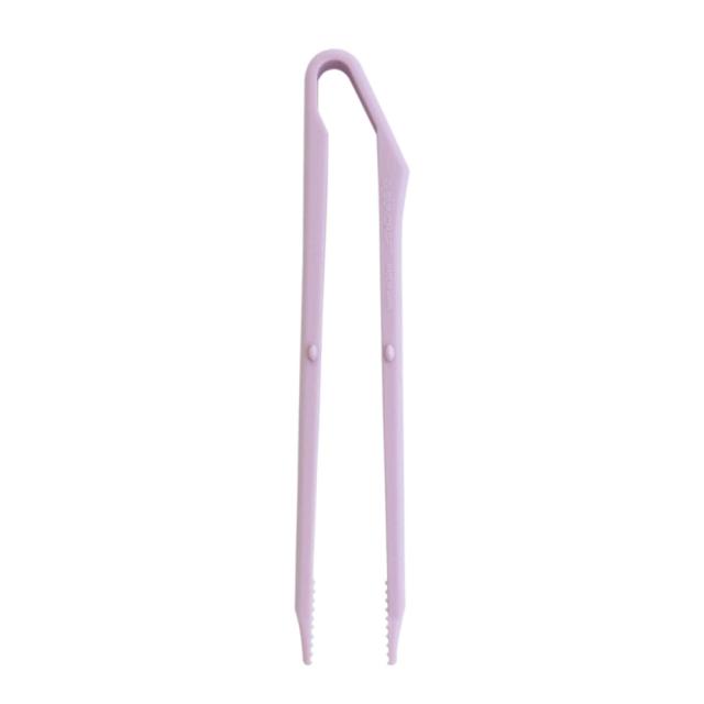 軽い力ではさめるハンドルデザインと、そのまま置いてもトングの先がテーブルに付きません。トングの先端はギザギザなので、ポテトチップスなどの薄いスナックもしっかりつかめます。