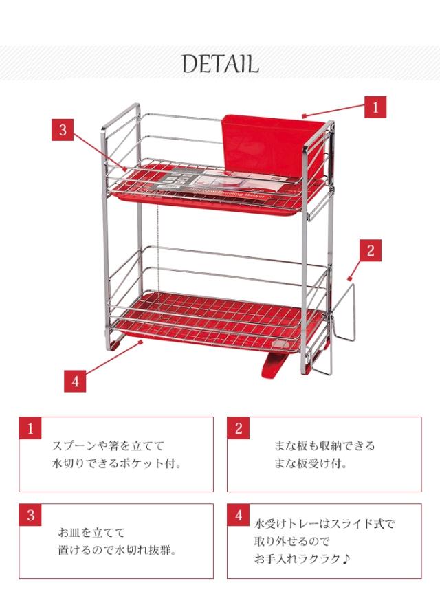 | 水切りラック ステンレス シルバー 2段 水切り カトラリーボックス付き 食器 大容量 シンクラック 水切りかご 水切りカゴ ラック シンプル おしゃれ キッチン用品 キッチン 台所 シンク 水回り 水周り 水まわり レッド 一人暮らし 新生活 |