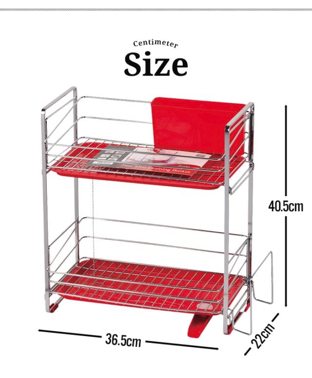 水切りラック 2段 レッド 幅36.5 奥行22.0 高さ40.5 水切り カトラリーボックス付き 食器 大容量 シンクラック 水切りかご 水切りカゴ ラック シンプル おしゃれ キッチン用品 キッチン 台所 シンク 水回り 水周り 水まわり 一人暮らし