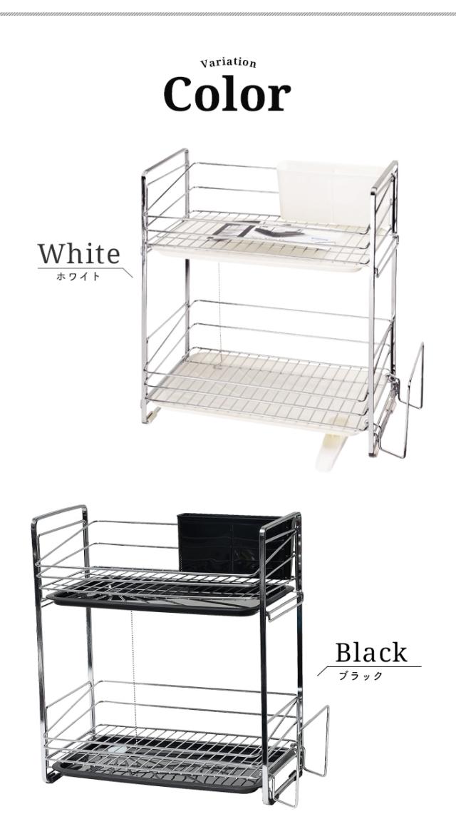 水切りラック 2段 ブラック/ホワイト 幅36.5 奥行22.0 高さ40.5 水切り カトラリーボックス付き 食器 大容量 シンクラック 水切りかご 水切りカゴ ラック シンプル おしゃれ キッチン用品 キッチン 台所 シンク 水回り 水周り 水まわり 一人暮らし
