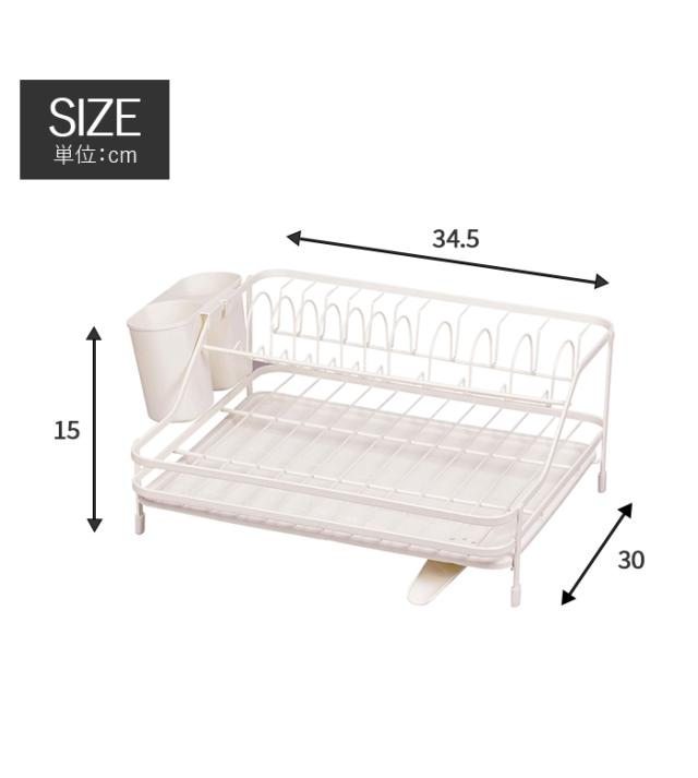 | 水が流れるトレー付 水切りかご 1段 ホワイト 水切りラック 食器置き シンクサイド 幅34.5 奥行30 高さ15 台所 シンク 水回り 水周り 大容量 食器 水切りかご 水切りバスケット キッチン用品 水まわり |