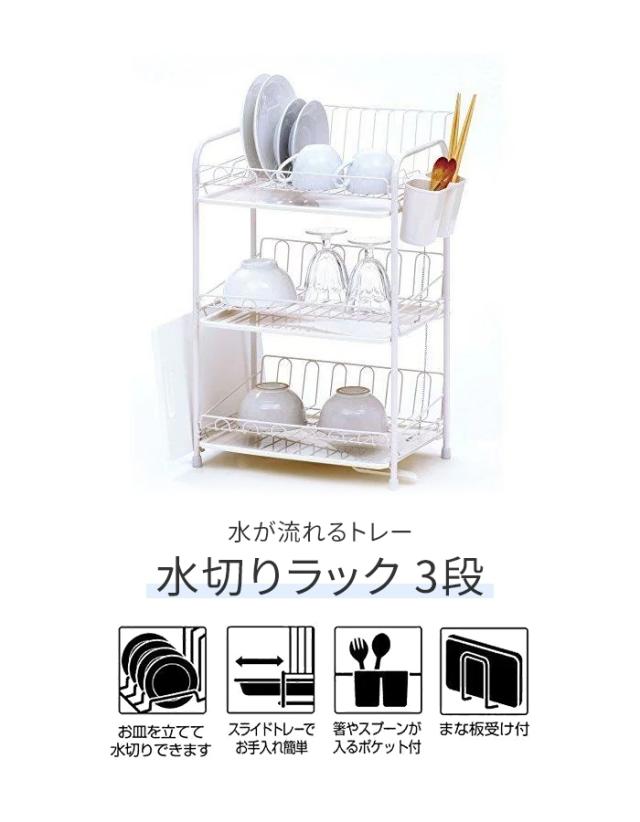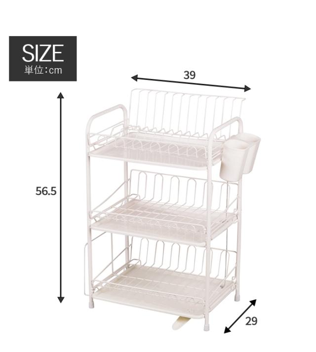 | 水が流れるトレー付 水切りラック 3段 水切りラック ホワイト 食器置き シンクサイド 幅39 奥行29 高さ56.5 台所 シンク 水回り 水周り 大容量 食器 水切りかご 水切りカゴ 水切りバスケット キッチン用品 水まわり |