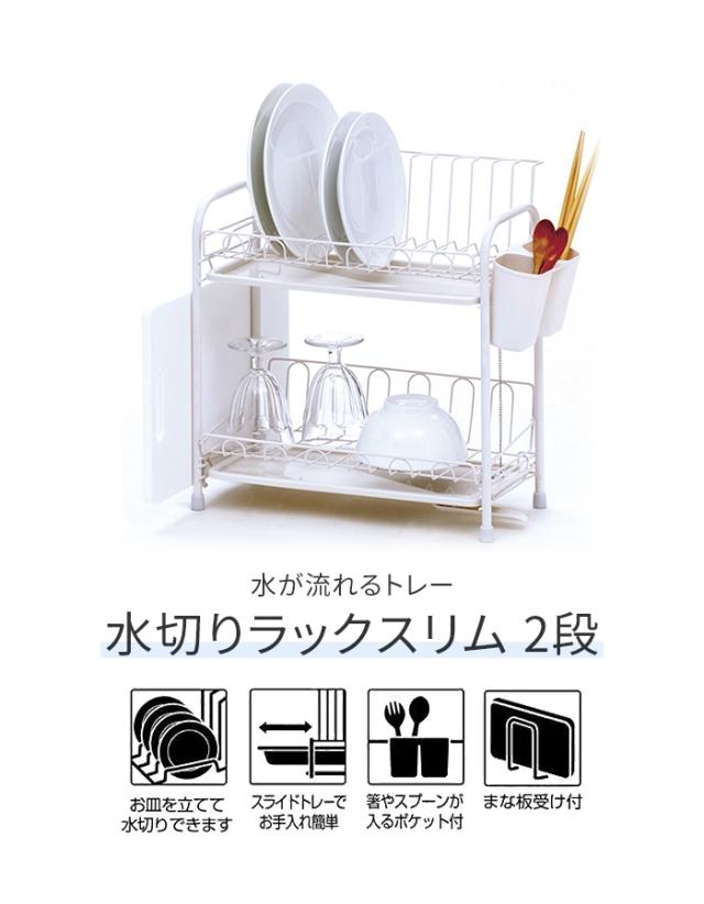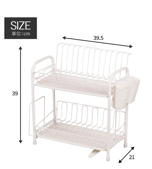| 水が流れるトレー付 水切りラック 2段 スリム 水切りラック ホワイト 食器置き シンクサイド 幅39.5 奥行21 高さ39 台所 シンク 水回り 水周り 大容量 食器 水切りかご 水切りカゴ 水切りバスケット キッチン用品 水まわり |