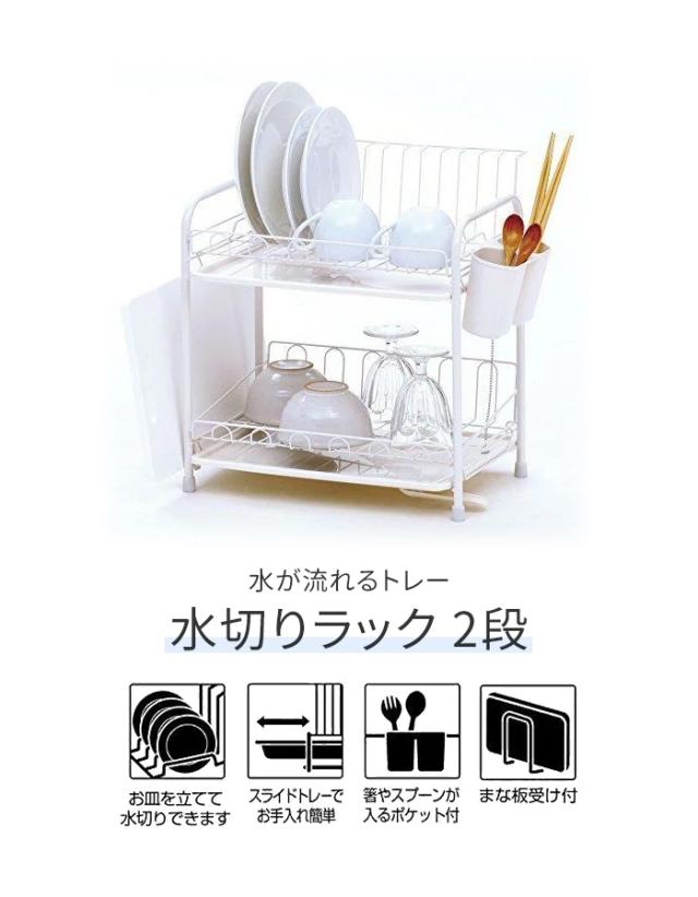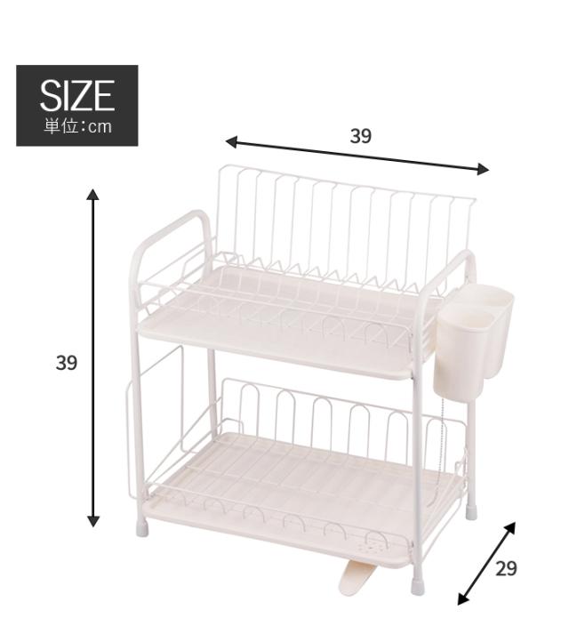 | 水が流れるトレー付 水切りラック 2段 水切りラック ホワイト 食器置き シンクサイド 幅39 奥行29 高さ39 台所 シンク 水回り 水周り 大容量 食器 水切りかご 水切りカゴ 水切りバスケット キッチン用品 水まわり |