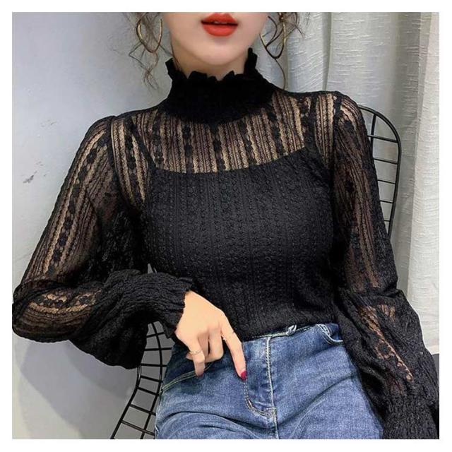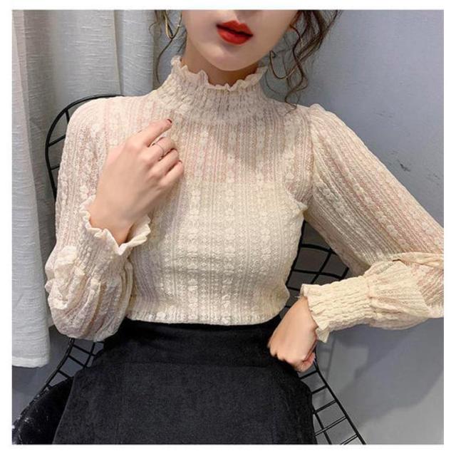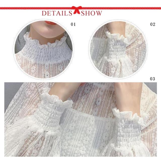立ち襟 レース ブラウス レディース シースル ハイネック 長袖 ブラウス レース トップス 結婚式 お呼ばれ セクシー フリルブラウス レース インナー プルオーバー 長袖 パーティー 送料無料
