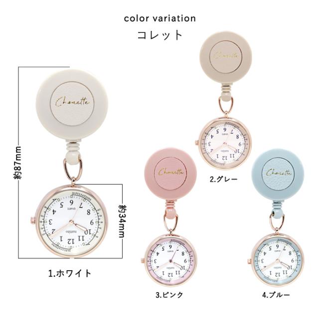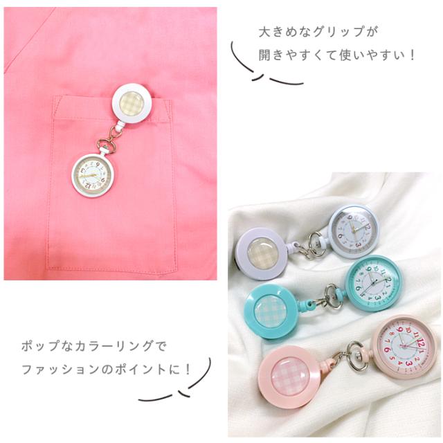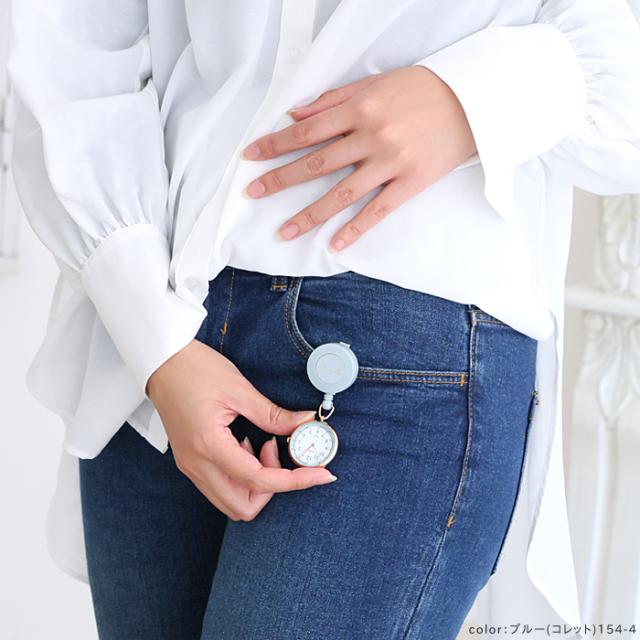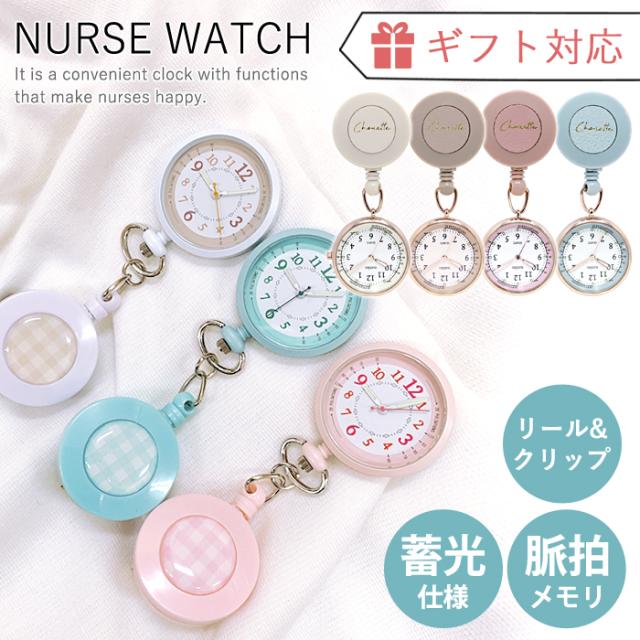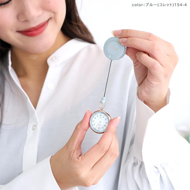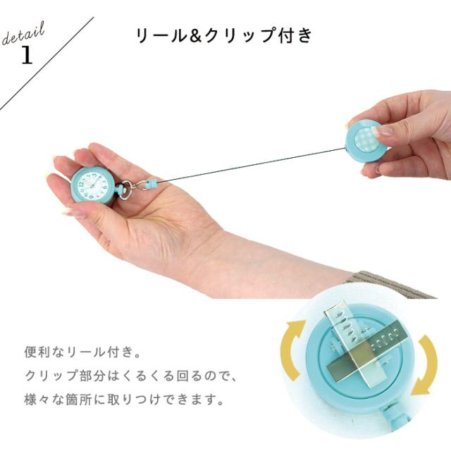 ナースウォッチ 1年保証 (fw-gy0171)【メール便送料無料】 ギフト対応 メッセージカード無料 看護師 ナース 介護士 かわいい リール クリップタイプ のびる 60cm 暗闇で光る スーパールミ 蓄光 日本製クォーツ 懐中時計 看護 介護 ナースグッズ プレゼント agesugi_sfa