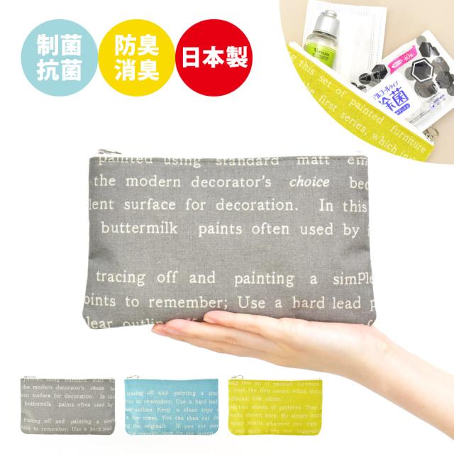 国内生産 抗菌防臭加工 小物入れ 化粧 メイクポーチ 旅行 平ポーチ コットン 大きい マチなし BIOLINER 英字 母の日 プレゼント 誕生日 プチギフト お礼 お祝い ギフト