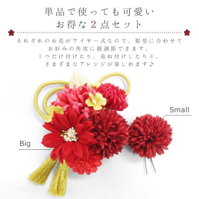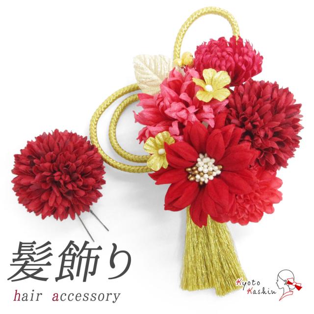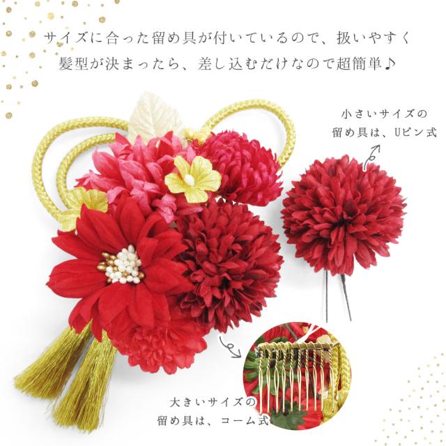 成人式 振袖 髪飾り 2点セット 振袖用 髪飾りセット ダリア 組紐 タッセル Uピン コーム ヘアアクセサリー コサージュ 和装 アクセサリー ゴールド ピンク 赤 金 前撮り 七五三 753 浴衣 袴 入学式 卒業式 結婚式 ブライダル 披露宴 和風 洋風