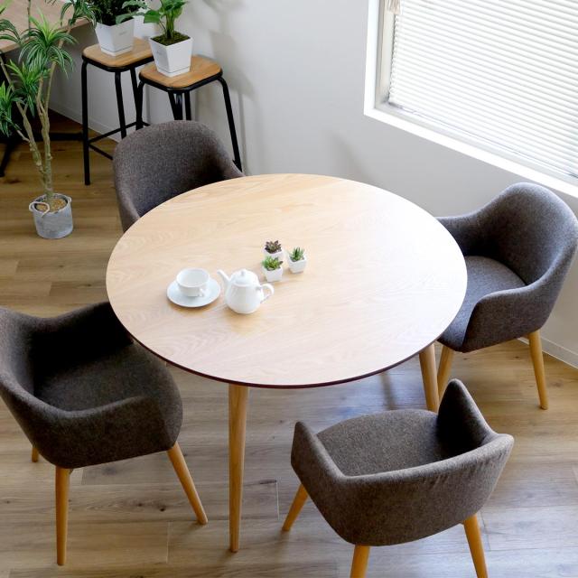 ダイニングテーブル 幅110cm 円型 ( 丸 テーブル 円形 ラウンド 食卓テーブル 食卓机 2人掛け 4人掛け 木目 キズ防止 クッション付き シンプル ナチュラル 北欧 天然木 木製 )