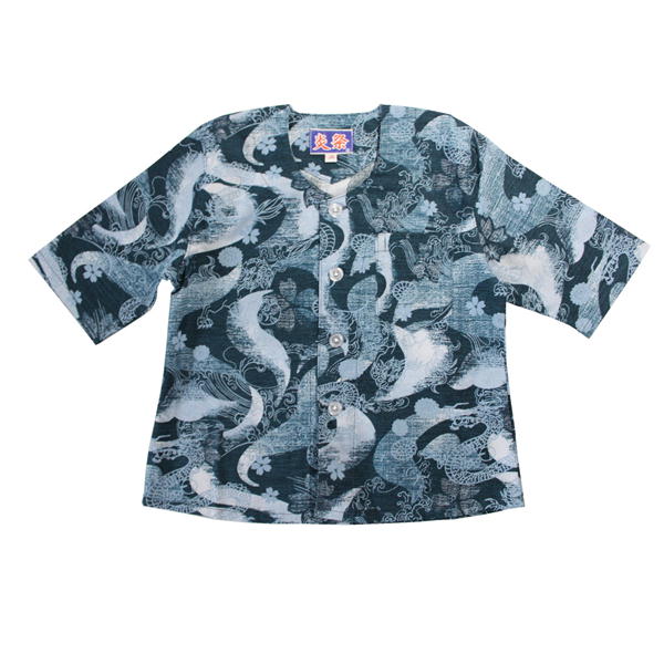 こいくち 子供 鯉口 シャツ 和柄迷彩紺 サイズ:JS・JM・JL・JLL 素材:綿100%