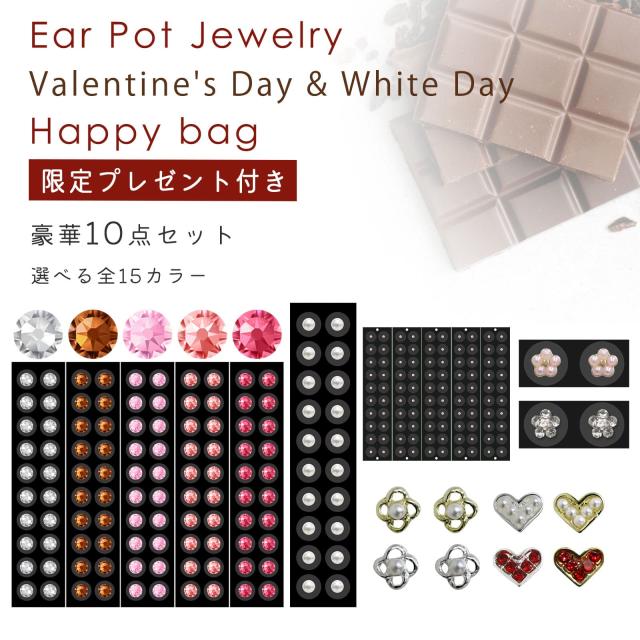 \購入特典付き/耳つぼジュエリー バレンタイン&ホワイトデー限定福袋 豪華10点セット カラー・サイズが選べる♪ 耳ツボジュエリー 耳つぼシール 耳ツボシール 耳つぼダイエット 送料無料 チタンアクセサリー ダイエット チタン粒 金粒 耳つぼピアス