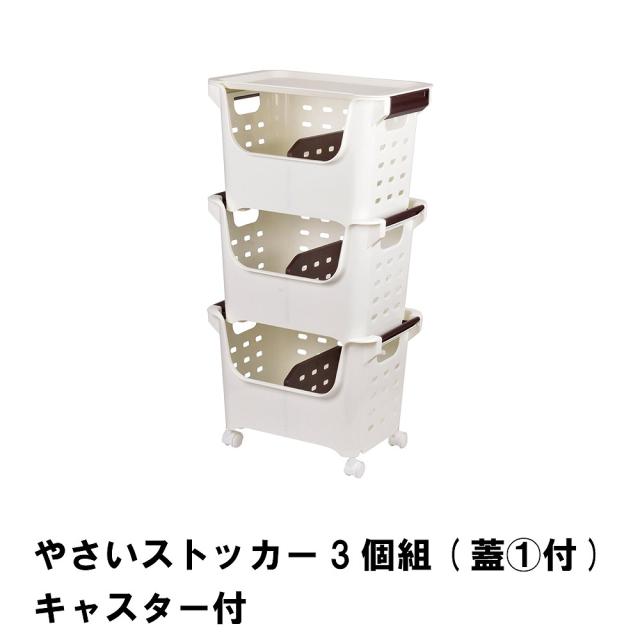 | やさいストッカー3個組 蓋1個付 キャスター付 |