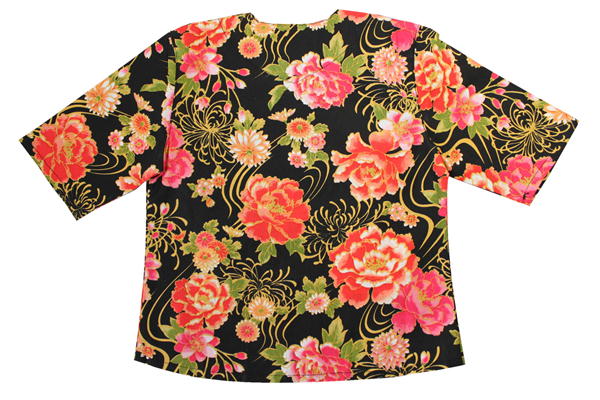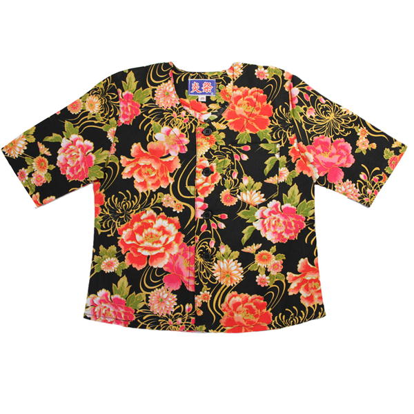 こいくち 子供 鯉口 シャツ 牡丹黒 サイズ:JS・JM・JL・JLL 素材:綿100%