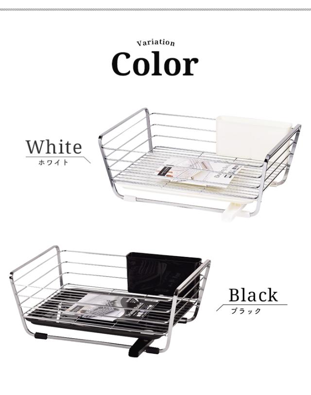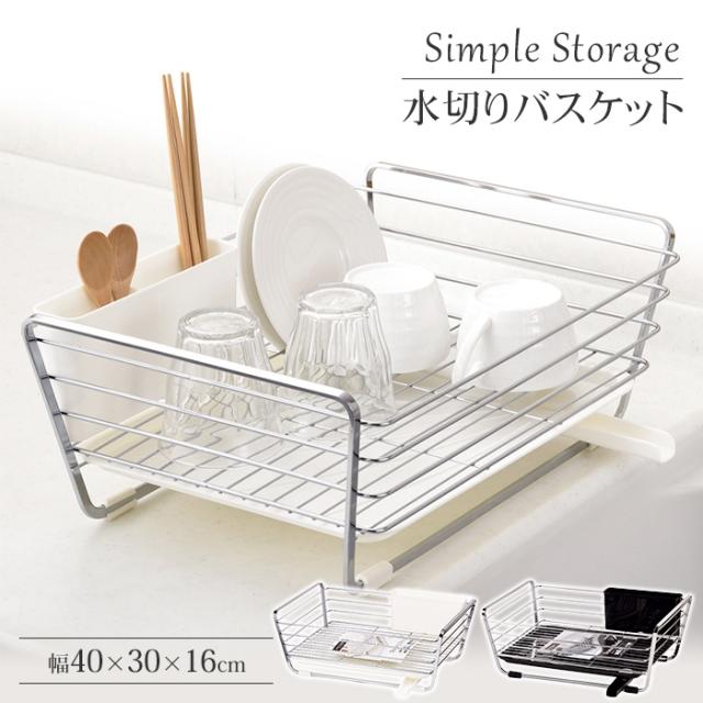 【値下げ】水切りかご 水切りラック 水切り 水切りカゴ 1段 ブラック/ホワイト 幅40.0 奥行30.0 高さ16.0 シンクサイド カトラリーボックス付き 食器 大容量 シンク上 水が流れる 横置き 縦置き 流れる キッチン おしゃれ シンプル 水まわり キッチン用品 水周り 一人暮らし