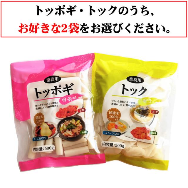 トッポギ トック 500g 選べる2袋 餅 もち 韓国餅 4~5人前 国産米100%使用 韓国食品 韓国料理 ご家庭用 業務用 送料無料 メール便 [トッポギトック選べる2袋 BY3] YP 即送