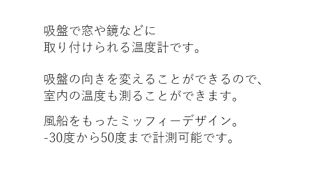 そんなナインチェの吸盤で窓や鏡などに取り付けられる温度計です。