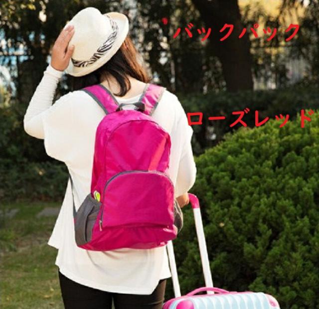 登山 リュック 登山リュック 折りたたみ バッグ 送料無料 コンパクト エコバッグ 軽量 防水 大容量 トラベル ハイキング バックパック キャンプ シンプル メンズ レディース 防災 避難用 ビジネス 出張 機内持ち込み ローズレッド 42x30.5x12cm