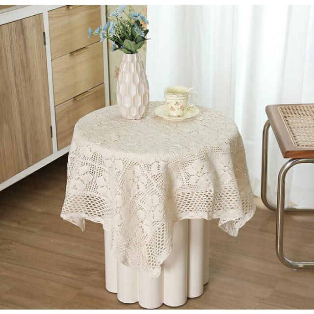 テーブルクロス 約130x130cm(正方形) 送料無料 おしゃれ かわいい 復古 ラウンドクロス 食卓 ソファー テレビ マット 花 敷物 雑貨 食卓 水洗い可 田園風 オフホワイト