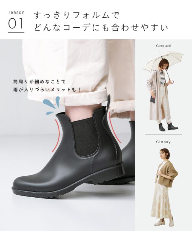 飽きることなく長くずっと使える、レインブーツでベーシックな形の『サイドゴアブーツ』。フォルムがすっきり見えるラインにこだわり、カジュアルすぎないサイドゴアブーツを実現し、カジュアルやアウトドア〜きれいめスタイルのカジュアルダウンと、幅広く使えます。