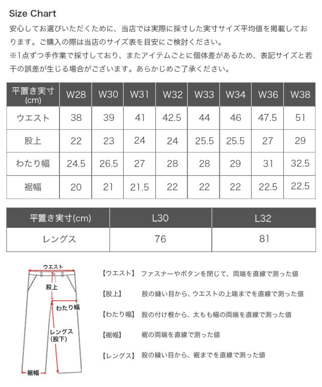 平置き実寸(cm)[ウエスト/股上/わたり幅/裾幅]
