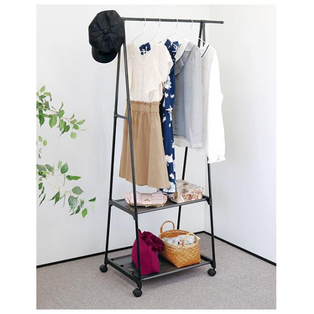 ハンガーラック 2段 スリム 通販 キャスター付き 軽量 ハンガー ラック 衣類掛け パイプラック 棚 スチール 不織布 組立 組立式 ブラック 収納 小物収納 シンプル