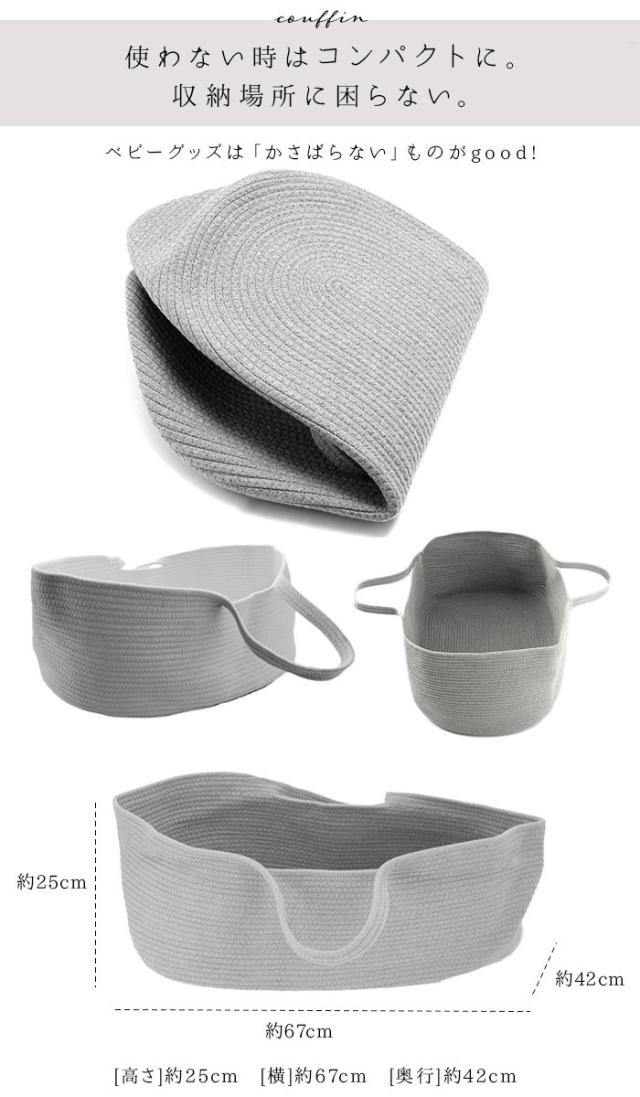 クーファン かご 通販 カゴ 籠 ベビー バスケット ロープ編み ベビーキャリー クーハン ベビーベッド 赤ちゃん ベビー 持ち運び コンパクト 折りたたみ 添い寝 シンプル 退院 出産祝い ギフト ベビー用品