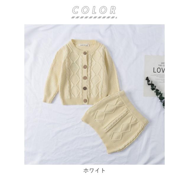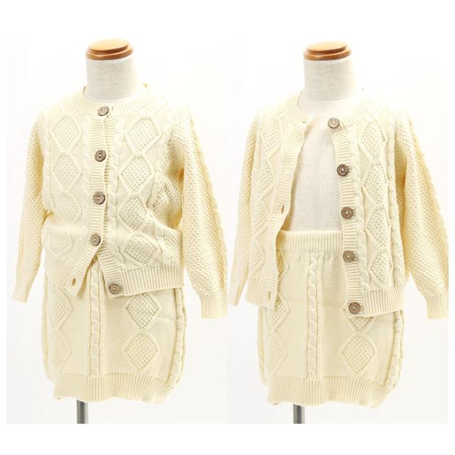 ベビー服 セットアップ 通販 ニット ベビー 女の子 スカート カーディガン ニットセットアップ 綿 コットン アラン編み おしゃれ かわいい シンプル 66cm 65 73cm 70 75 80cm 80 90cm 90 上下セット キッズファッション