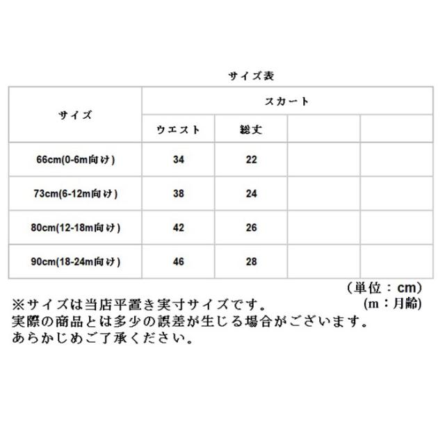 | 重量 | 【トップス】約128g 【スカート】約99g ※73cm(6−12m向け)の商品の重量です。 |