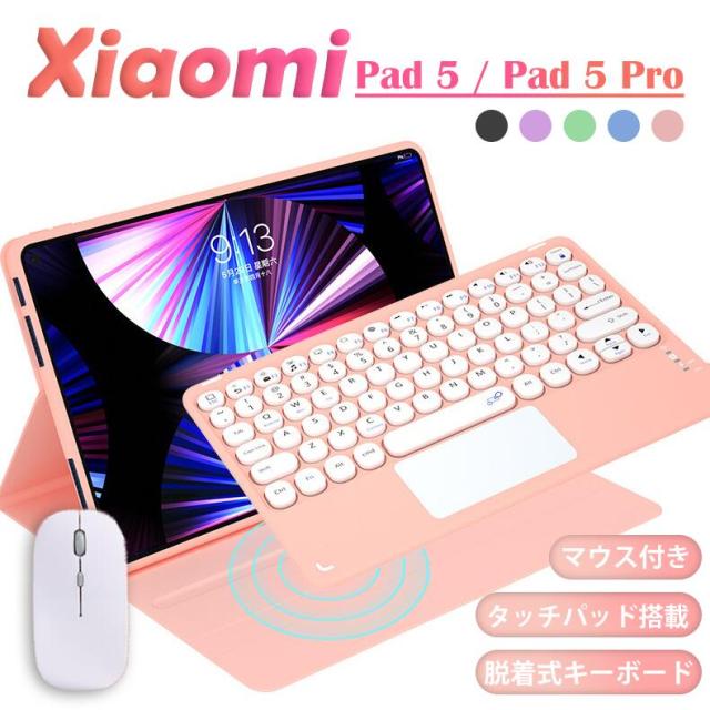 【マウス付き】Xiaomi Pad 5 キーボード ケース XiaomiPad 5 Pro ケース 脱着式 分離式 キーボード 2021モデル 11インチ Mipad 5 pro ケース キーボード付き タッチパッド搭載 キーボードケース ペン収納付き 手帳型カバー PUレザー スタンド機能 耐衝撃 仕事 遠隔授業 丸い