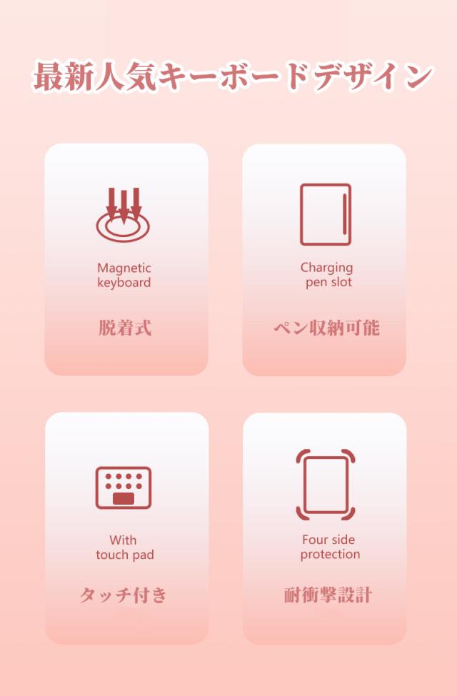 手触りの良いと高品質の環境にやさしいPUレザーを採用され、耐摩耗性をくれ、汚れや指紋がつきにくい。キーボードカバーの超薄型設計により、iPadの最大限の保護が強化されます。滑り止めライニングですので、マルチアングル調整できます!メール、仕事、映画、読書、ミーティングなどに最適!