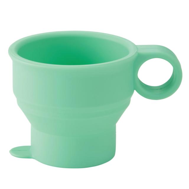 たたんでコンパクトになるシリコン製のミニコップです。昼食後のハミガキや外出先でのうがい、薬を飲む時などに便利です。シリコン製なので万が一落としても、割れる心配がありません。取っ手付きの使いやすいデザインで、お子さまやお年寄りにも安心です。