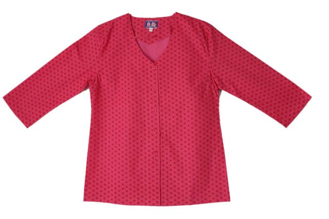 女性用 鯉口シャツ ピンク麻の葉 7分袖 サイズ:S・M・L・LL 素材:綿100%